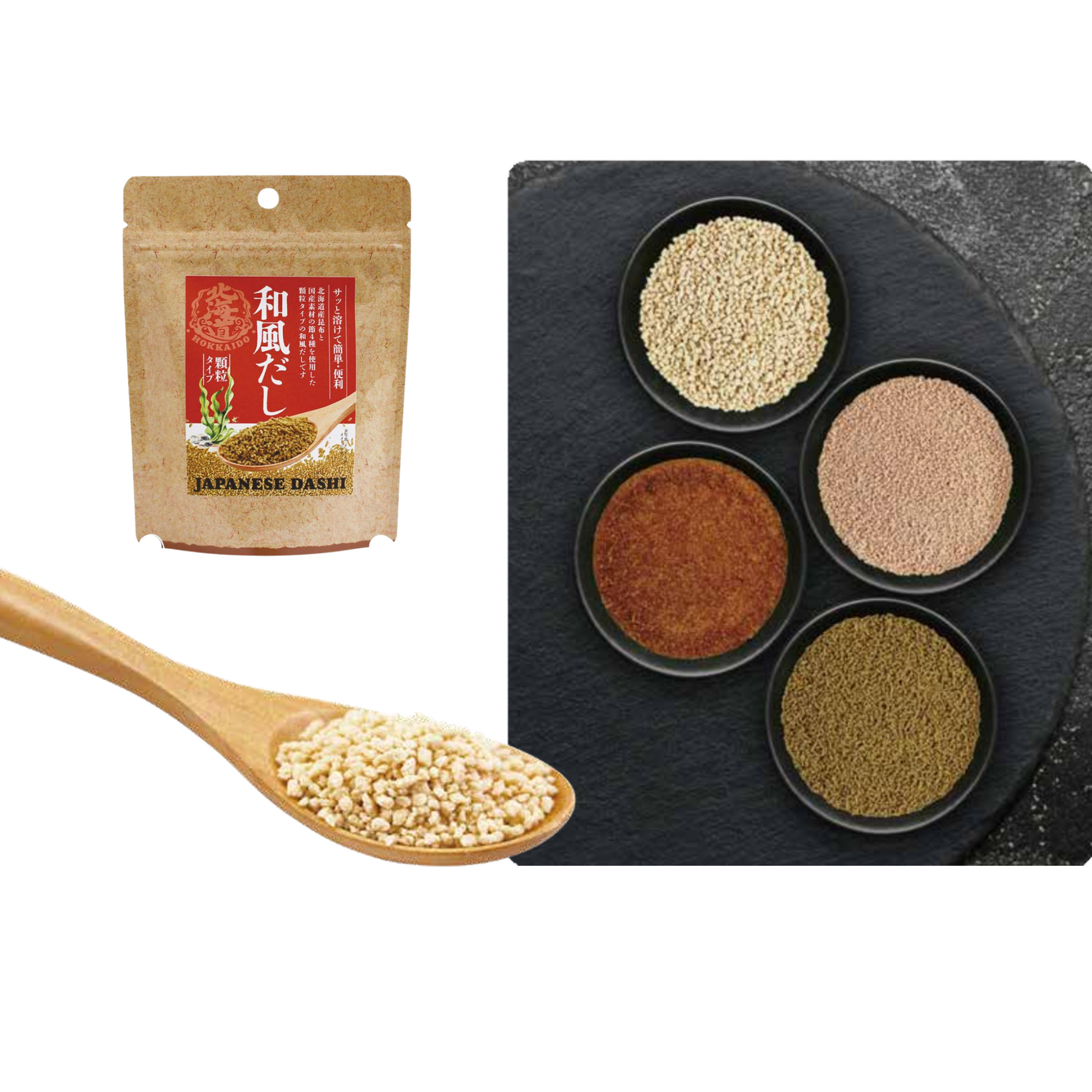 This granular Japanese soup stock is made from carefully selected Hokkaido kelp and four types of Japanese knotweed, concentrating the essence of the sea and the mountains in one spoonful.