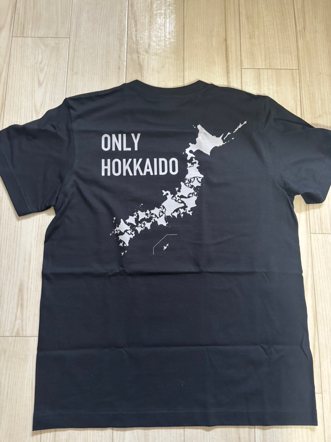 【ONLY HOKKAIDO】T-shirt, depicting the Japanese archipelago with a sharp silhouette, only Hokkaido is lit up with bright colors