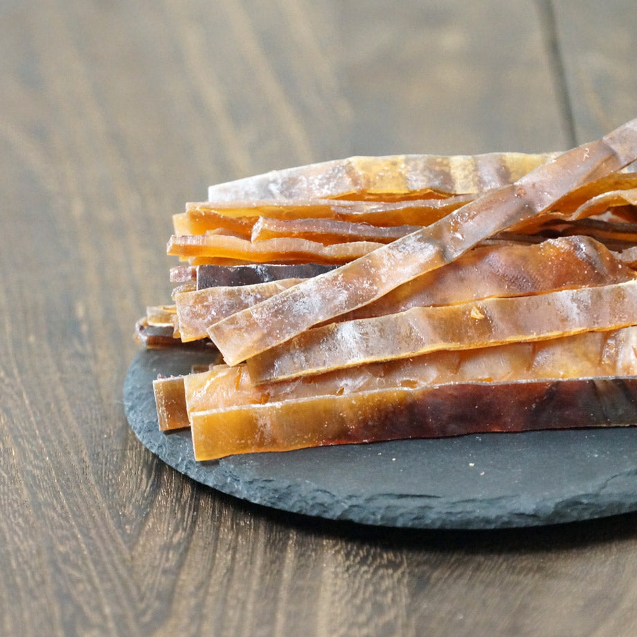 將魷魚切成細長的肉乾狀,並以偏甜的口味調味。