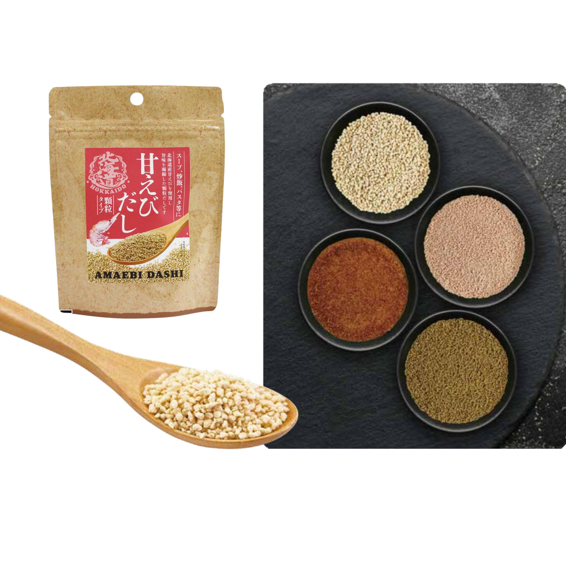 這款多功能顆粒型湯料以北海道產**甜蝦(阿米特蝦)**精製而成,完整保留蝦子特有的甘甜與海味鮮香,無添加化學調味料,讓您吃得安心、喝得更有味。